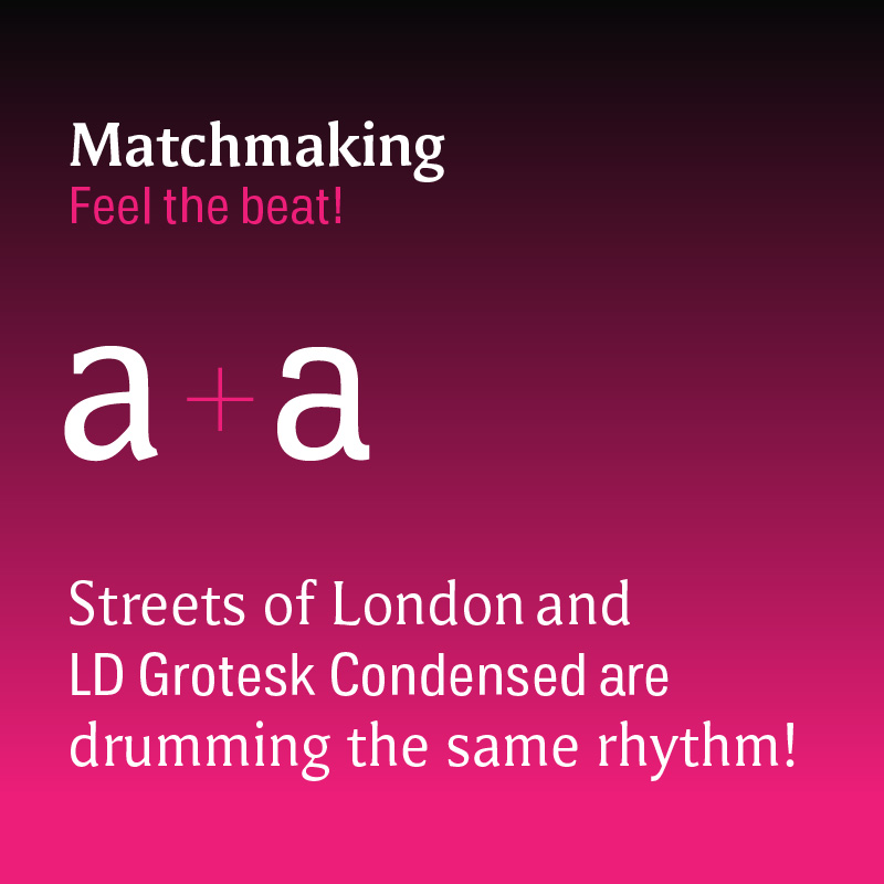 This unique typeface project made up a complete font family out of a capital alphabet designed by the British stone cutter and type designer David Kindersley (1915–1995), a former apprentice of Eric Gill. Initially created to set a new quality standard in street sign typography in the 1940s in England, it has now been extended to a font family suitable for manifold purposes.