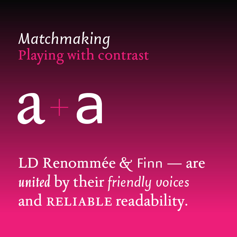Based on this work Robert designed the lowercase letters thoughtfully caring to preserve the unique flavour of the model. After a period of refinement and testing, the resulting typeface was extended with accompanying italics and a bold style.