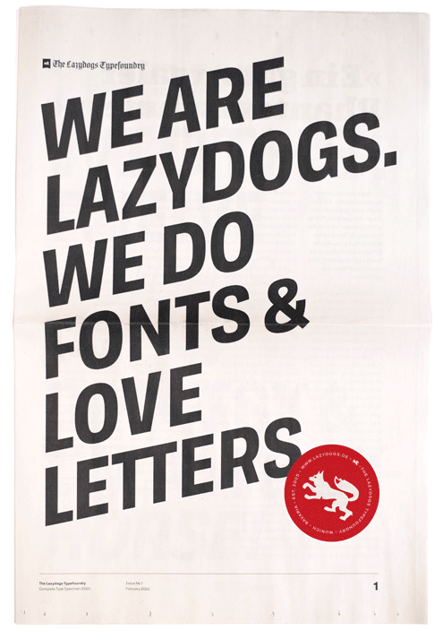 For the specimens’ wording the creators decided to use text material related to dadaism and concrete poetry as well as old and forgotten german words. In this way the specimens not only show typefaces with indication of its sources, but also became a pleasurable read representing literature and vocabulary of the letterpress era.